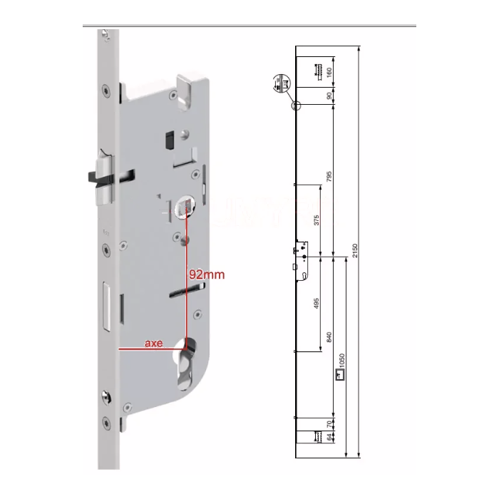Quick view Add to cart Accueil 244092 MACO serrure GTA à relevage - axe 40 / entraxe 92 / 4 galets Prix 96,00 € Serrure de porte G-TA MACO rallongeable Serrure réversible Longueur 2200mm Hauteur de poignée 1050mm 4 galets manœuvre relevage de...