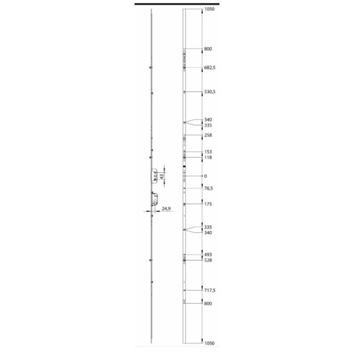 4969428 WINKHAUS crémone GAK - axe 7,5mm - 945/1195mm - poignée à 470