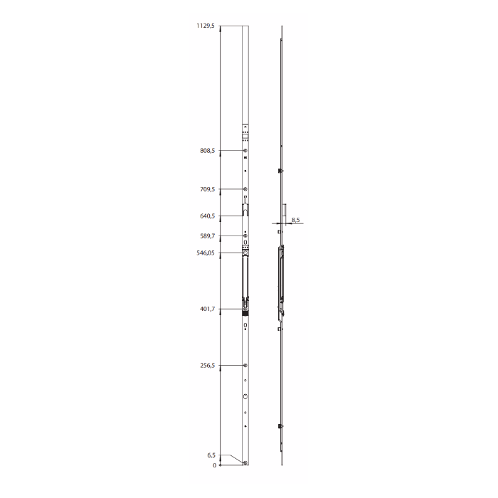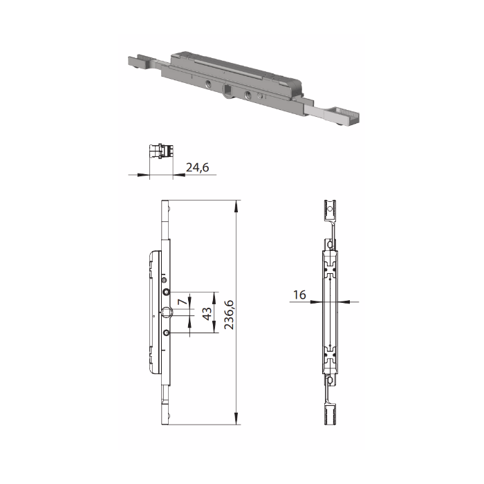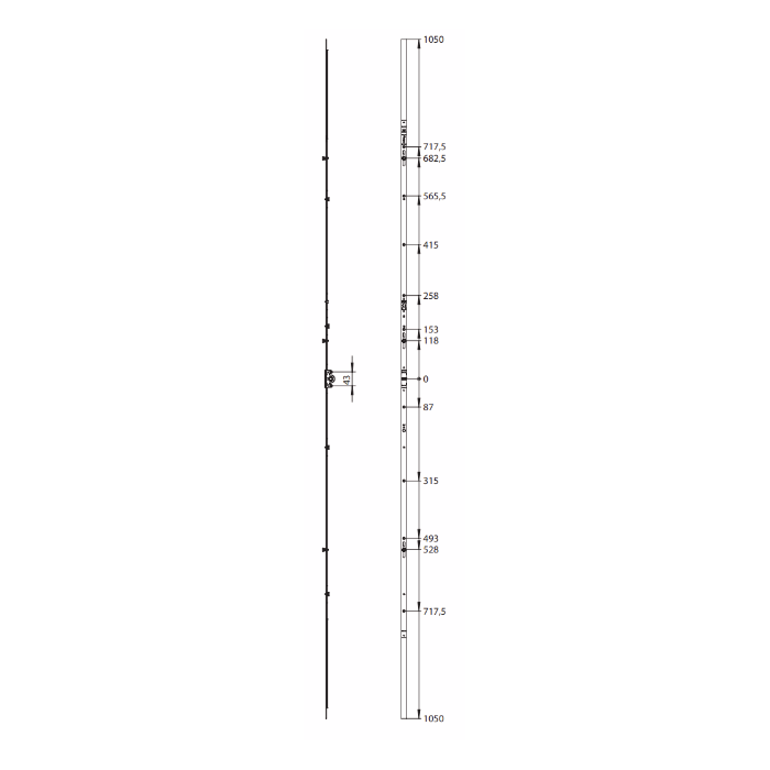 FEC5551- FERCO crémone JET F7.5 - axe 7.5 mm / 1601/1725mm / poignée à 600mm