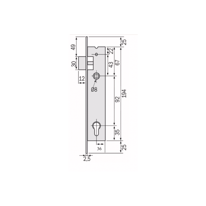 Serrure STREMLER TF3 manœuvre au cylindre - axe 21/ entraxe 92 / 3 points / T.U 24X6