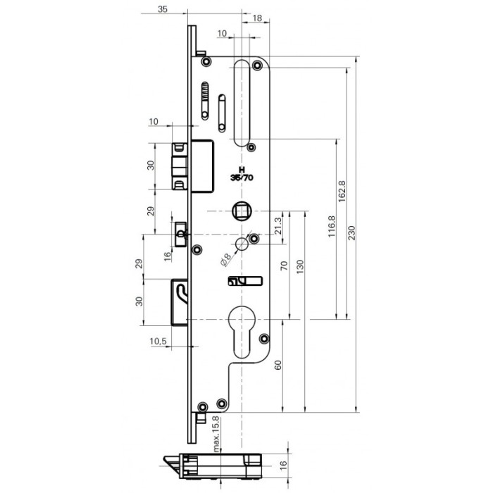 771982 ROTO serrure FASTEO h620 automatique - axe 35 / entraxe 70