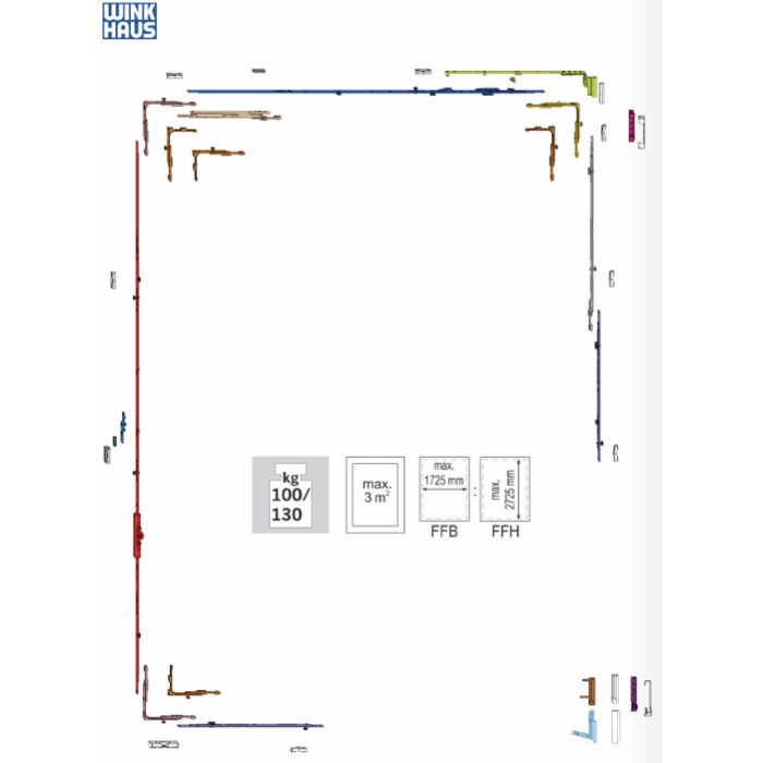 4969431 WINKHAUS crémone GAK - axe 7,5mm / 580-830 poignée à 260