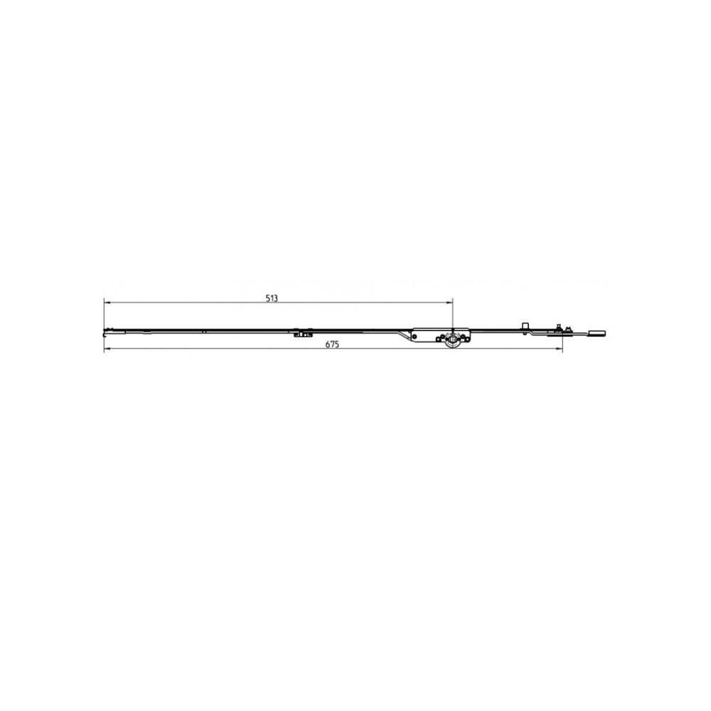 625643 ROTO crémone OF à sortie de tringle basse + galet rond / L675 / Axe 15mm / HFF 1001-1200