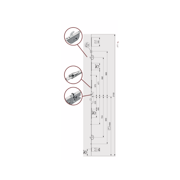 244121 MACO serrure GTA à relevage - axe 35/ entraxe 92 / 4 galets – 2 crochets