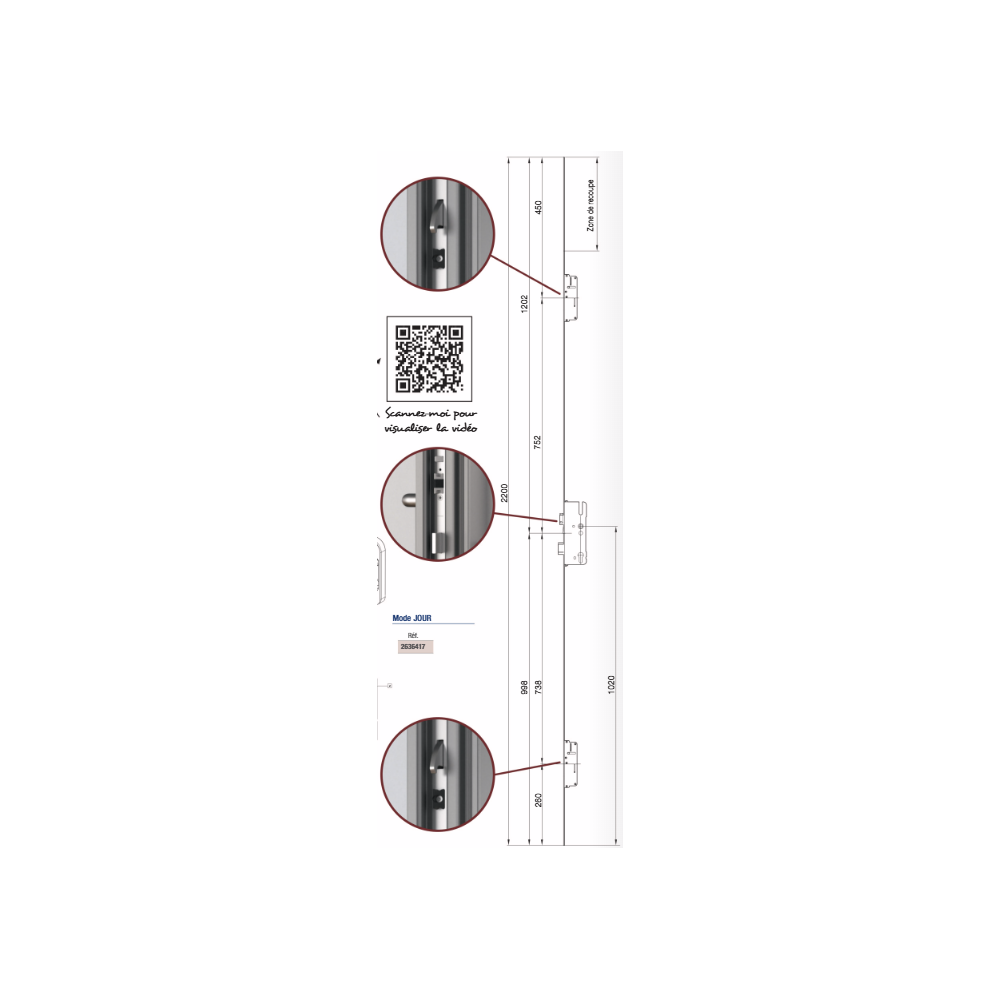 2020841 ROTO serrure TANDEO auto- axe 35 / entraxe 92 / 2 crochets – 2 demi tours – TU 24x6mm
