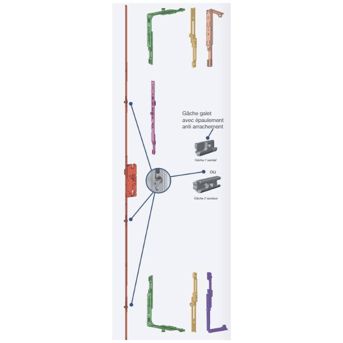 5097331 WINKHAUS serrure à relevage – axe 45 / entraxe 92 / 3 galets