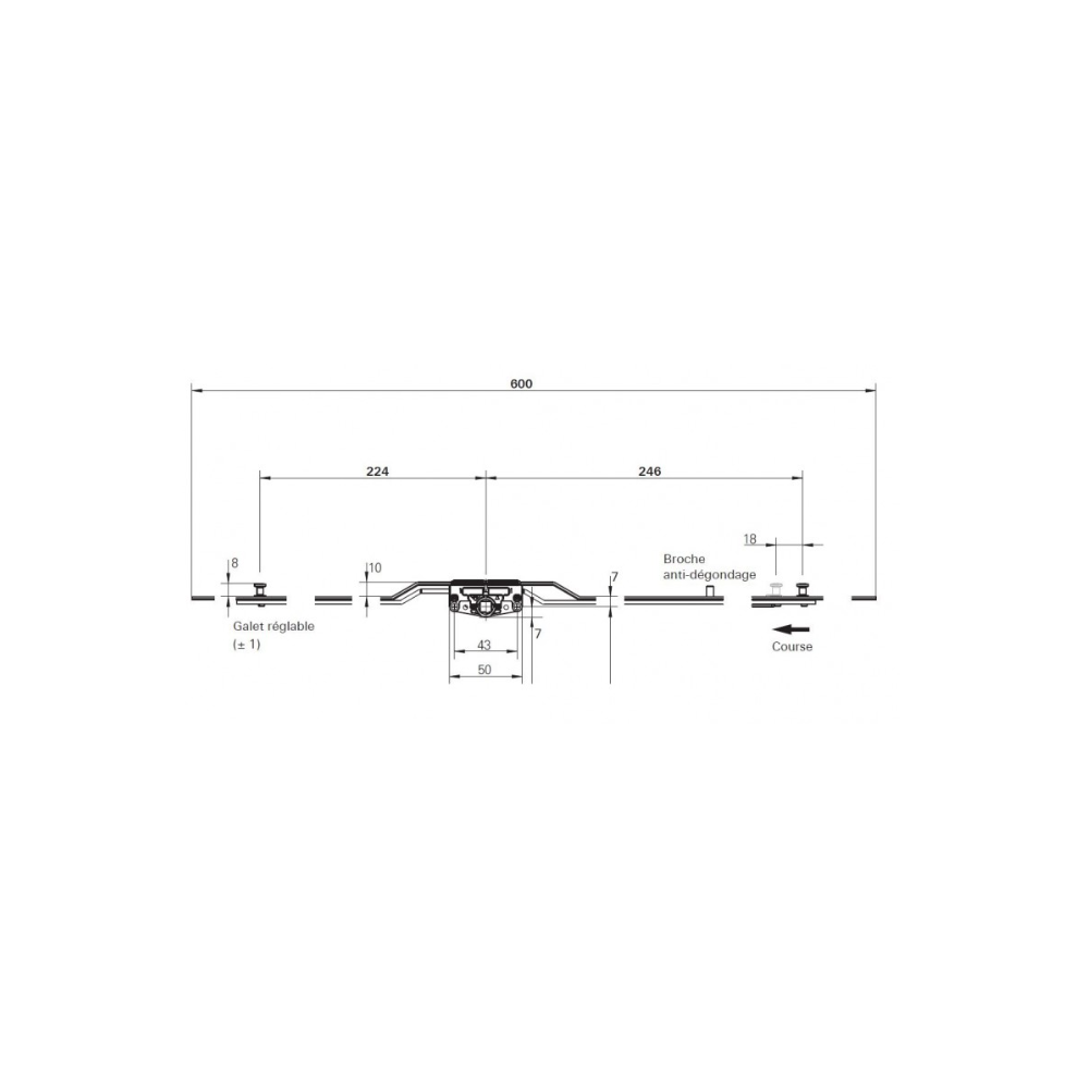 628430 ROTO crémone de coulissant / axe 7mm / L600mm/ poignée à 300mm