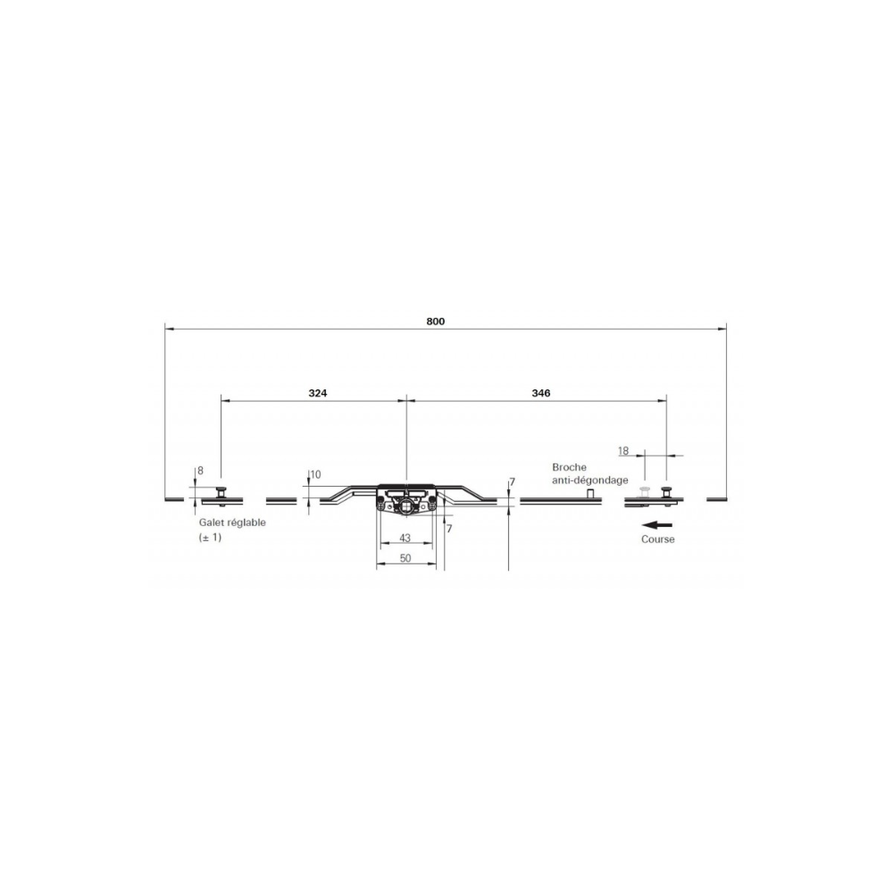 628431 ROTO crémone de coulissant /axe 7mm / L800mm/ poignée à 400mm