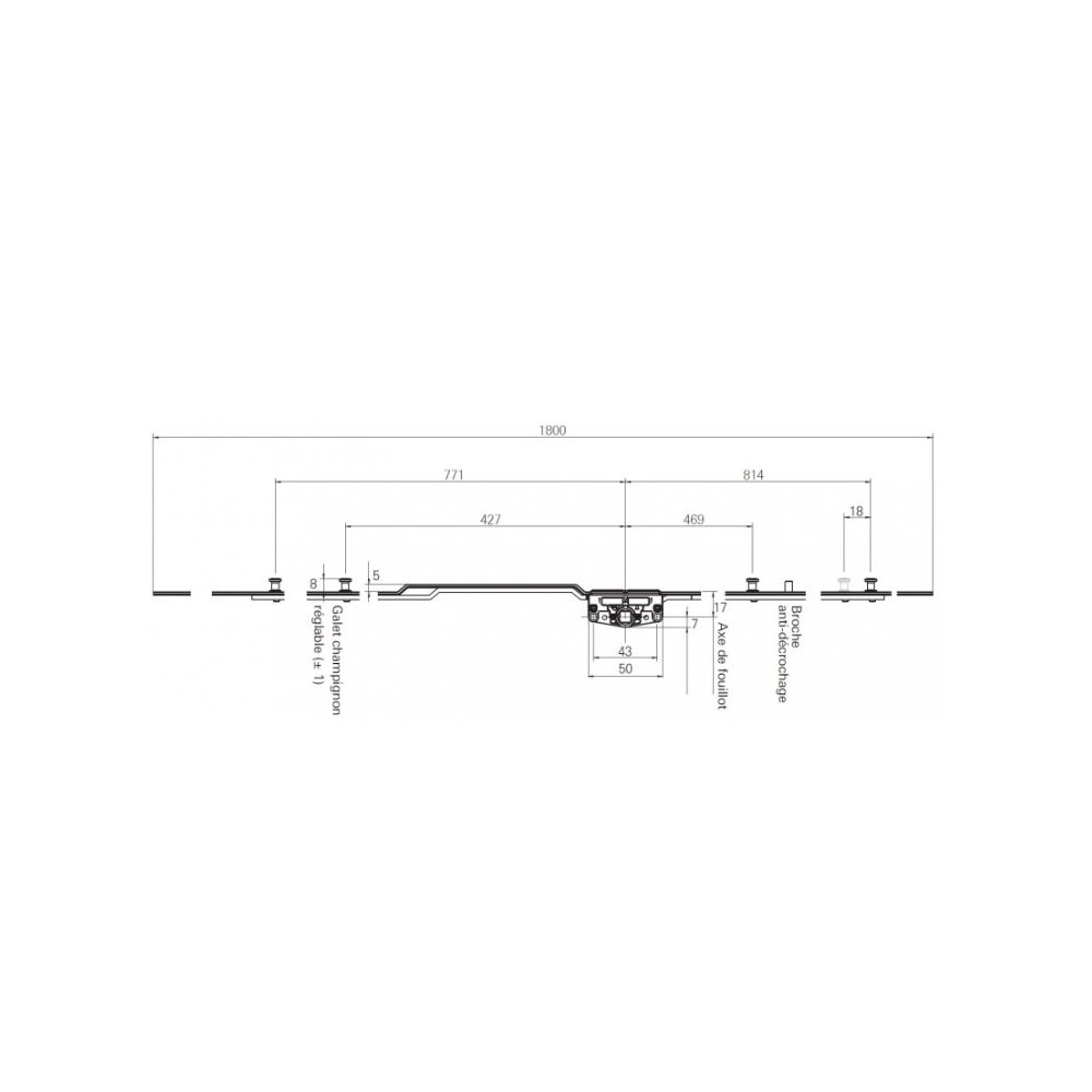 628498 ROTO Crémone de coulissant simple / 4 galets / axe 17mm / L1800