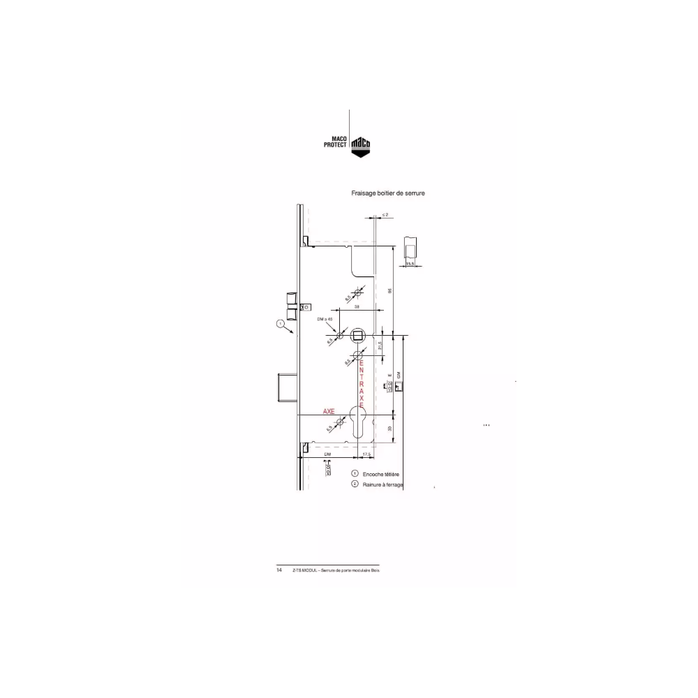 230691 MACO serrure ZTS manoeuvre au cylindre - axe 40/ entraxe 92 / 4 galets