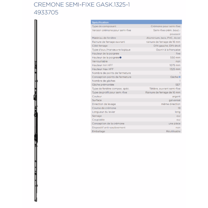 Crémone Semi fixe GASK 1325-1