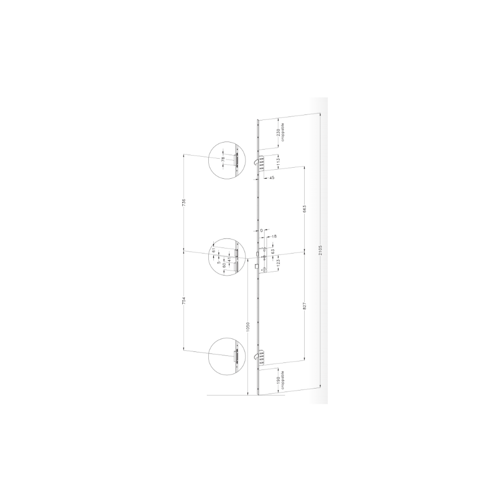 2094055 WINKHAUS serrure manœuvre au cylindre - axe 40/ entraxe 92 / 2 crochets