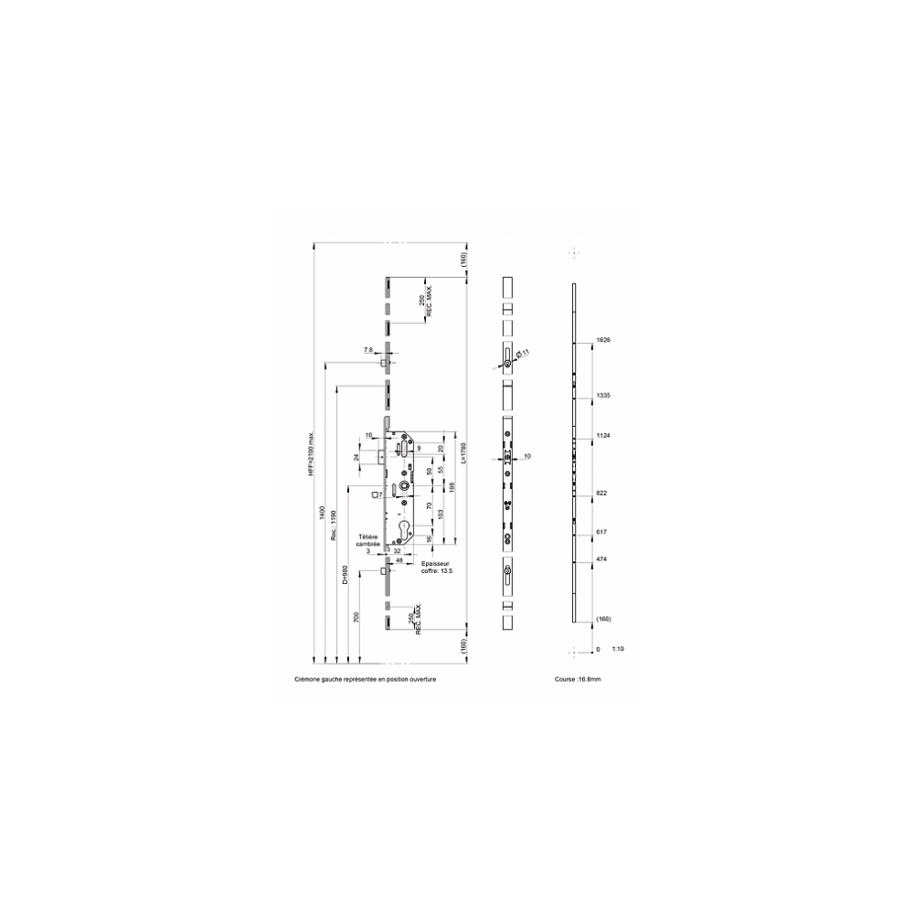 FERCO crémone à barillet R2 DF/DV - axe 32 / entraxe 70